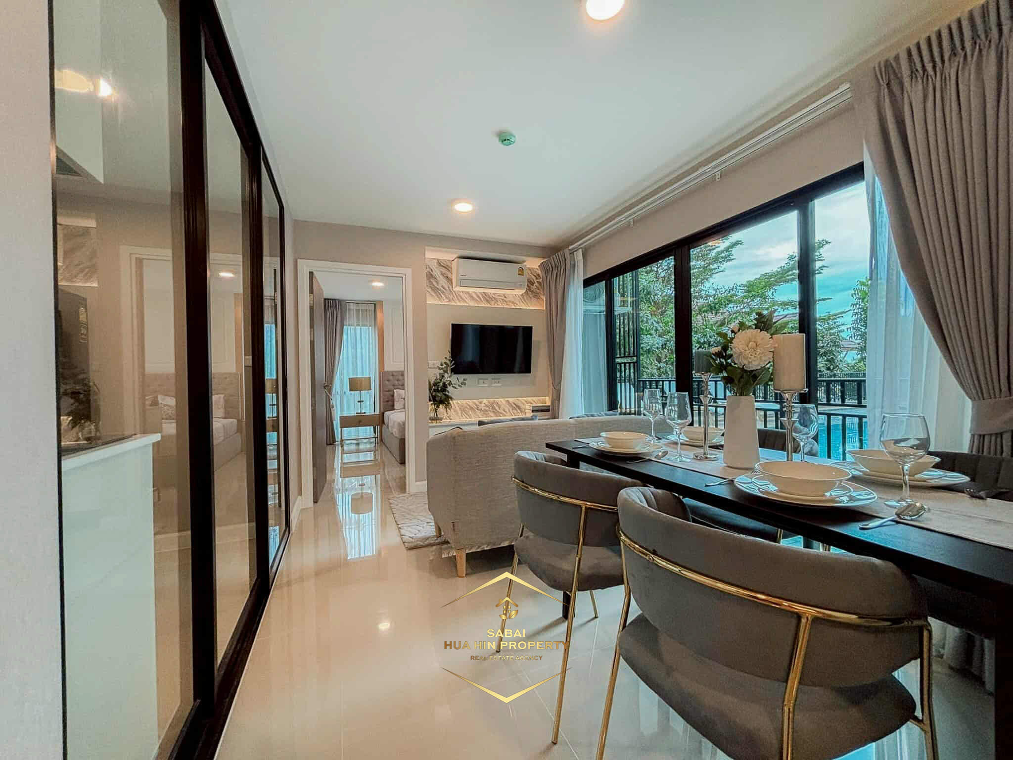 - Living - dining room- 2 bathrooms- 2 bedrooms- Built-in kitchen- Fully furnished (Furniture package included value 360,000 THB)- Pool access- Balcony* AMENITIESΒ
